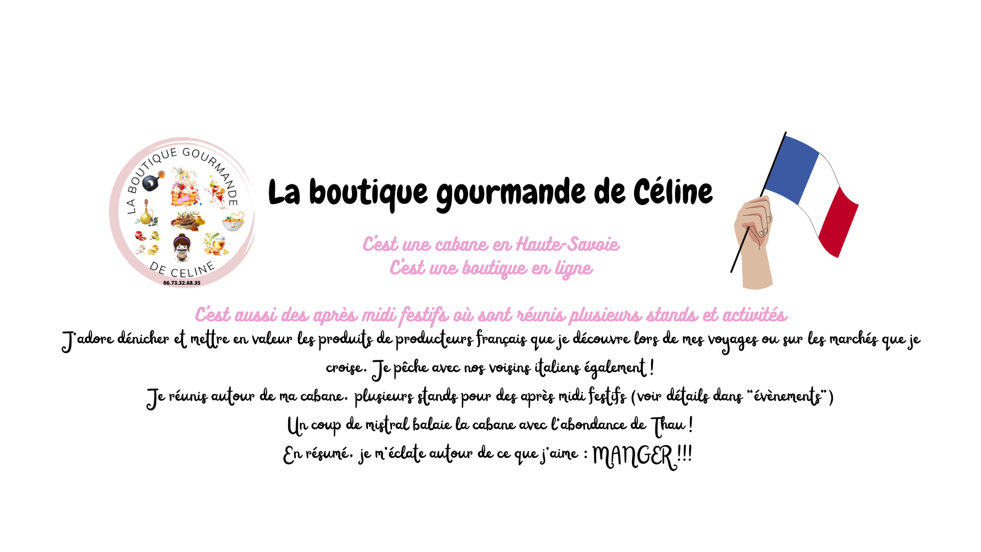 Une journée d'automne où vous pourrez venir déguster un bon café sur le stand de Mary qui vous présentera la collection Guy Demarle, découvrir mes gourmandises, les produits LR, les pierres et bijoux de Christelle, vous faire dorloter par Laurie (épilations, pose de semi permanent, produits Auriège, etc...) Pour ce marché, le groupe s'agrandit à ma plus grande joie et je suis ravie d'accueillir Daniel et Séverine qui vous présenteront la réflexologie, le shinzu, les soins supra quantum, etc....... Lucie sera peut être aussi de la partie ! Si elle a un empêchement, vous pourrez tout de même lui passer commande et récupérer vos fromages le jour J ! Nos VIP seront Aude qui nous présentera ses escargots du Parmelan et Brigitte qui sera là avec ses patisseries ! Nous aurons le plaisir également de vous faire déguster la gamme de rhums arrangés qui débarquent à la cabane gourmande ! Au plaisir de vous rencontrer !!!